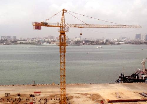 二、下旋轉(zhuǎn)式塔吊起重機(jī):歸轉(zhuǎn)支承裝在底座與轉(zhuǎn)臺(tái)之間,除行走機(jī)構(gòu)外,其他工作機(jī)構(gòu)都布置在轉(zhuǎn)臺(tái)上一起歸轉(zhuǎn)。除軌道式外,還有以履帶底盤和輪胎底盤為行走裝置的履帶式和輪胎式。它整機(jī)重心低,能整體拆裝和轉(zhuǎn)移,輕便靈活,應(yīng)用廣泛,宜用于多層建筑施工。